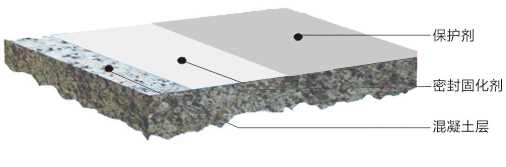 永久性地防尘、硬化、耐磨、抗渗、防止细菌裂缝的产生及风化、起尘;在经机械施工的表面使用1至3个月后会出现打蜡般的光泽,6个月将出现大理石般光泽,永远无需打蜡。