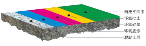 环氧自流平地坪是采用低粘度环氧树脂、颜填料、助剂等经高速分散和研磨而制成漆料,可根据地面的高低不平顺势流动,对地面进行自动找平。