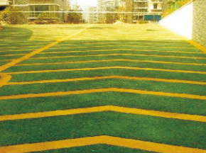无震动止滑坡道地坪是由一种多棱角,硬度极高的矿物骨料及特种改性树脂组合而成,采用专业的施工工艺,其产品具有防滑无震动,经久耐磨,消音降燥,色彩鲜艳, 耐候性优异,并具有较强的标识功能.无震动止滑坡道是现代高档物业的首选 。