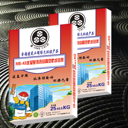 MB-K8水泥基渗透结晶型防水砂浆是一种单组分聚合物改性水泥基防水材料,含有硅酸盐、纤细石英砂及活性化学剂。这种活性化学剂一旦渗入混凝土与水接触后,将发生化学作用,形成阻止水分子渗入的结晶体。若有任何收缩裂缝,WPS的特别配方将与分子产生作用,继而封密渗水位置。