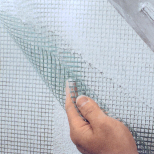 再用刮刀将玻纤网或钢网压入湿胶浆中并抹平。
