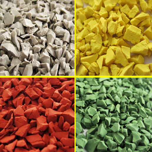 EPDM产品是针对需求高安全性地面的用户。 EPDM颗粒由合成橡胶制成,可以生产多种颜色,且以其优异的性能可抵抗紫外线照射和耐一般化学反应。特别是在有图案的施工时,更能显现EPDM彩色颗粒的优越性。